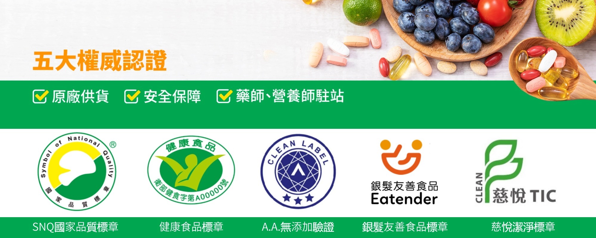 集結五大認證,打造最具公信力的健康市集