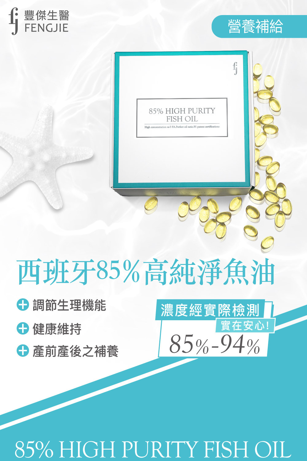 | 商品名稱 | 【FJ豐傑生醫】西班牙85%高純淨魚油(60顆/盒) |