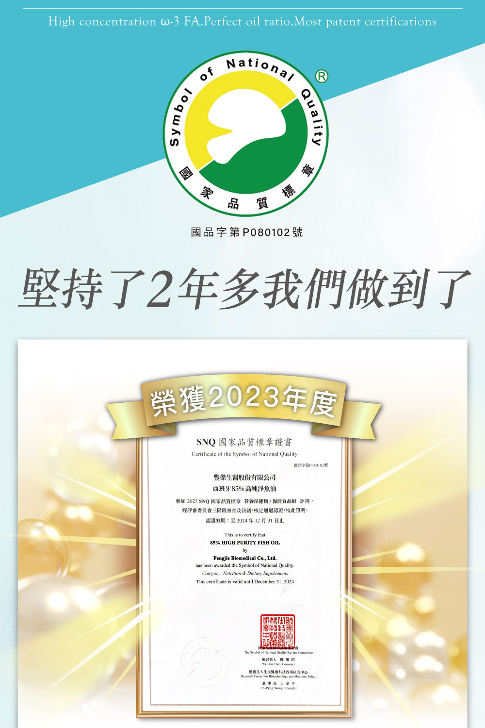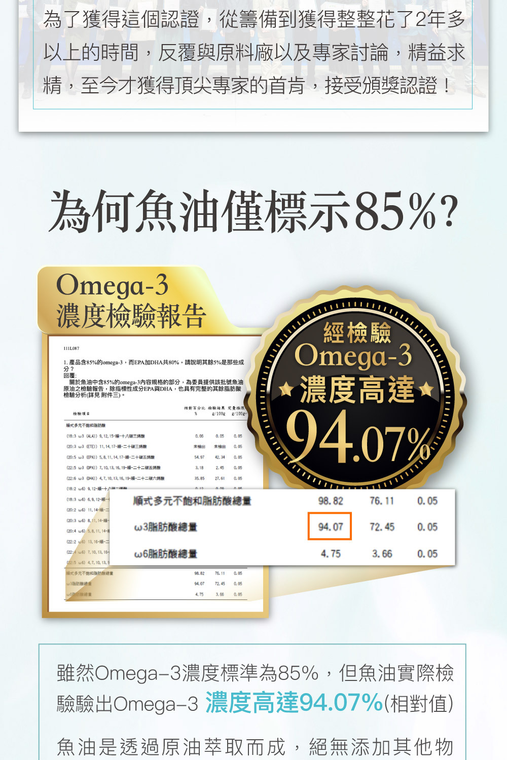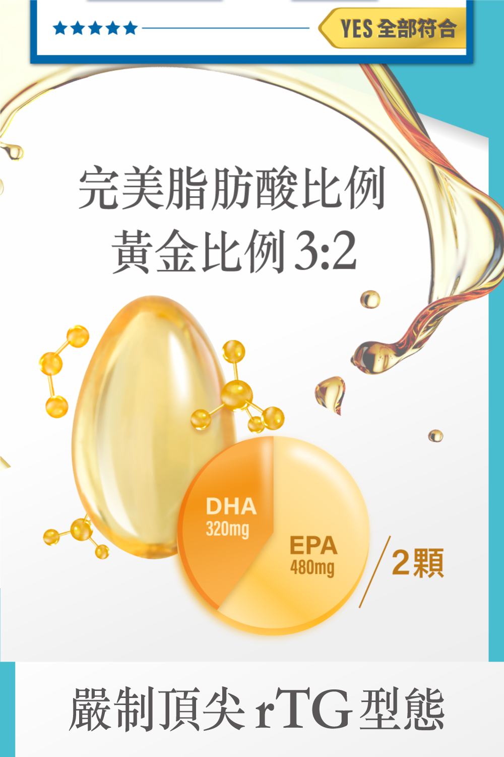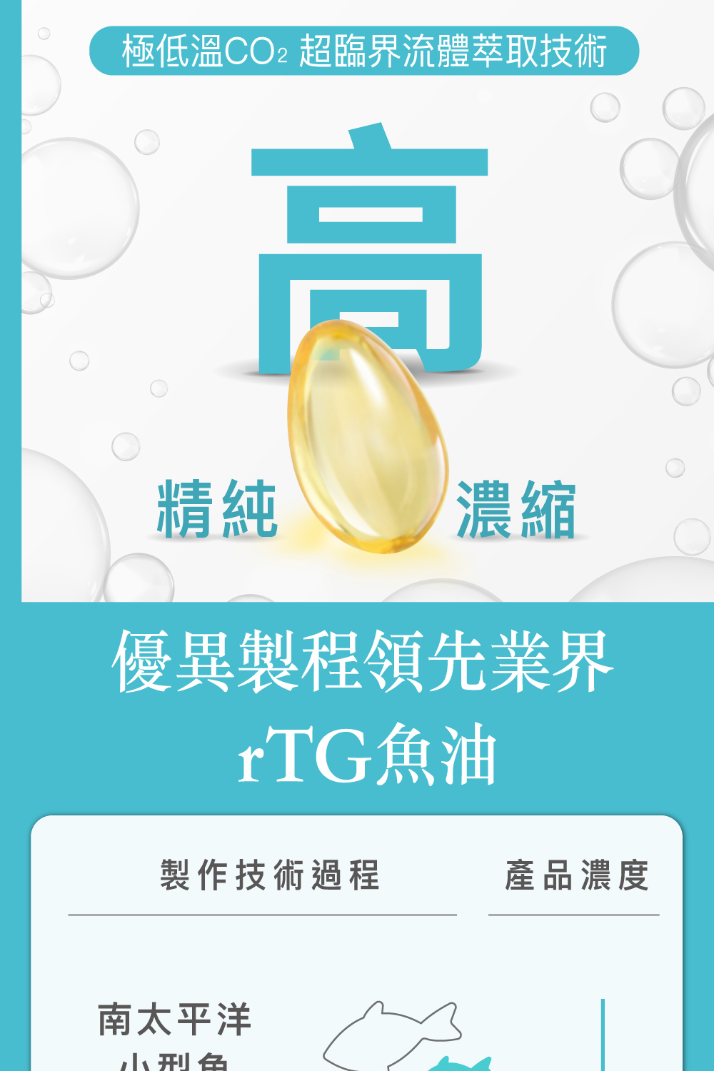 ★ 專利特殊一段式萃取技術製成Omega-3高濃度魚油