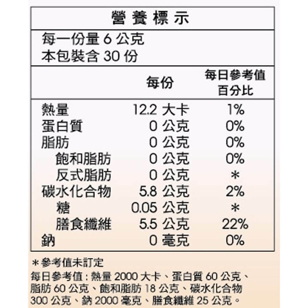 | 注意事項 | 1.本產品含難消化性糊精,食用後可能產生排氣與脹氣現象,若有不適者,請停止使用 2.本產品非屬治療及矯正疾病用品,糖尿病病人仍需就醫治療 3.請洽詢醫師或營養師有關食用本品之意見,均衡的飲食及適當的運動為身體健康之基礎 4.本產品為健康食品,不能取代正規醫療及相關藥物 5.本產品供保健用,請依建議攝取量食用 |
