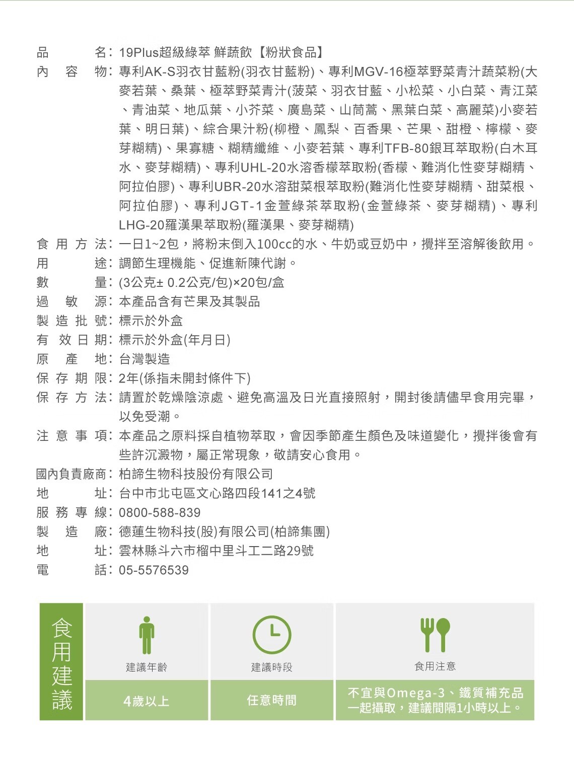 ●19種高纖蔬菜低溫研磨
