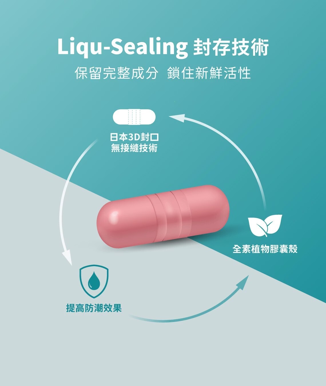 ●採用3D封口植物膠囊,鎖住精華