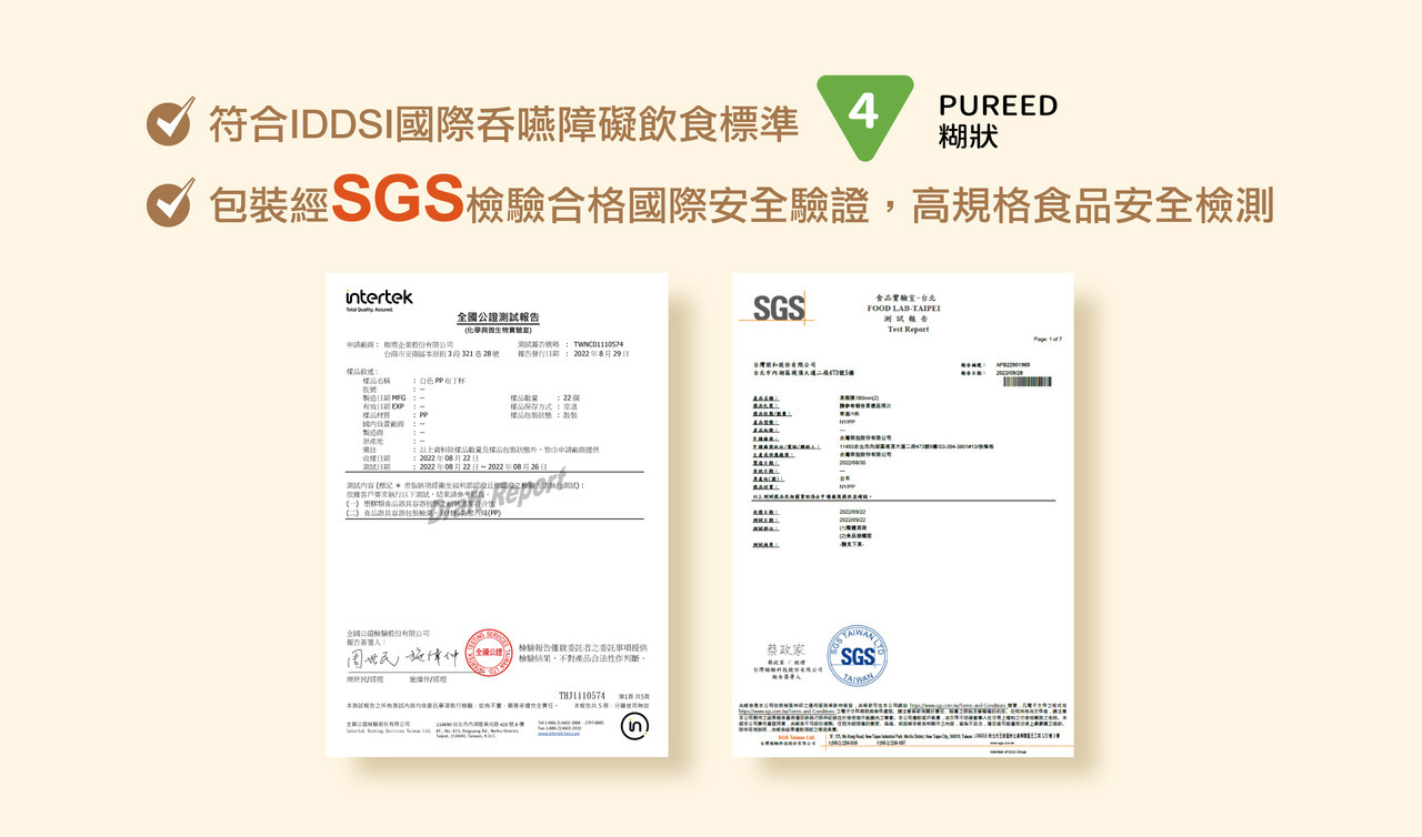 屬於「IDDSI  4級糊狀」。為慕絲狀口感,用舌頭翻攪即可化開。