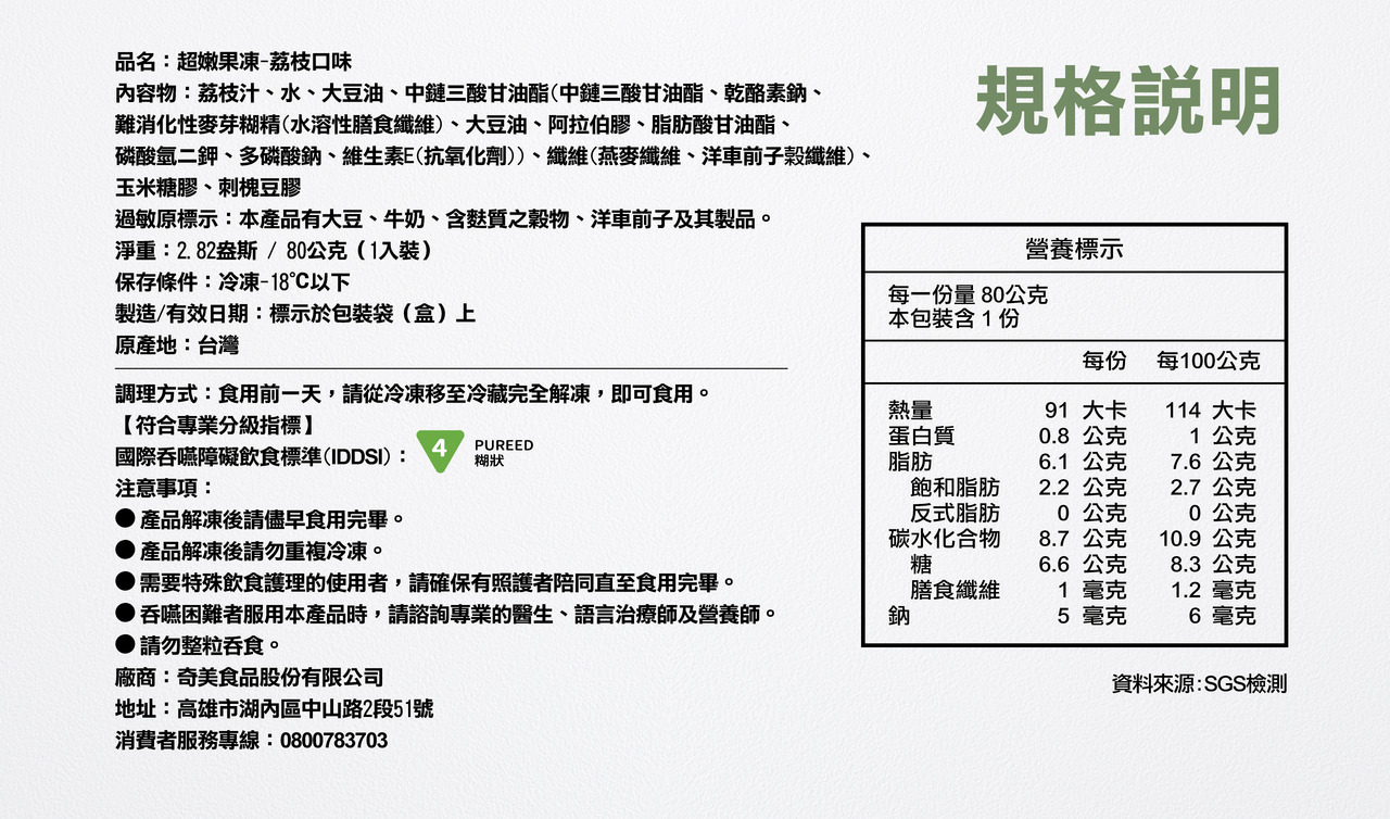 • 如有特殊疾病需求食用前請先諮詢醫生/語言治療師/營養師建議)