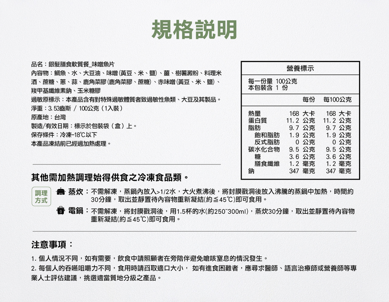 • 銀髮友善食品 (食用前請先諮詢醫生/營養師建議)