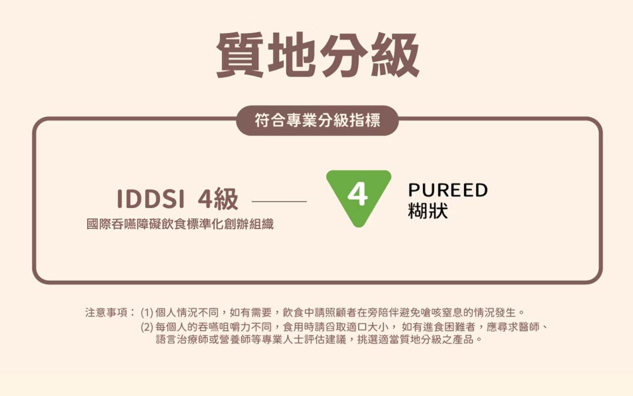 • 如有特殊疾病需求食用前請先諮詢醫生/語言治療師/營養師建議)