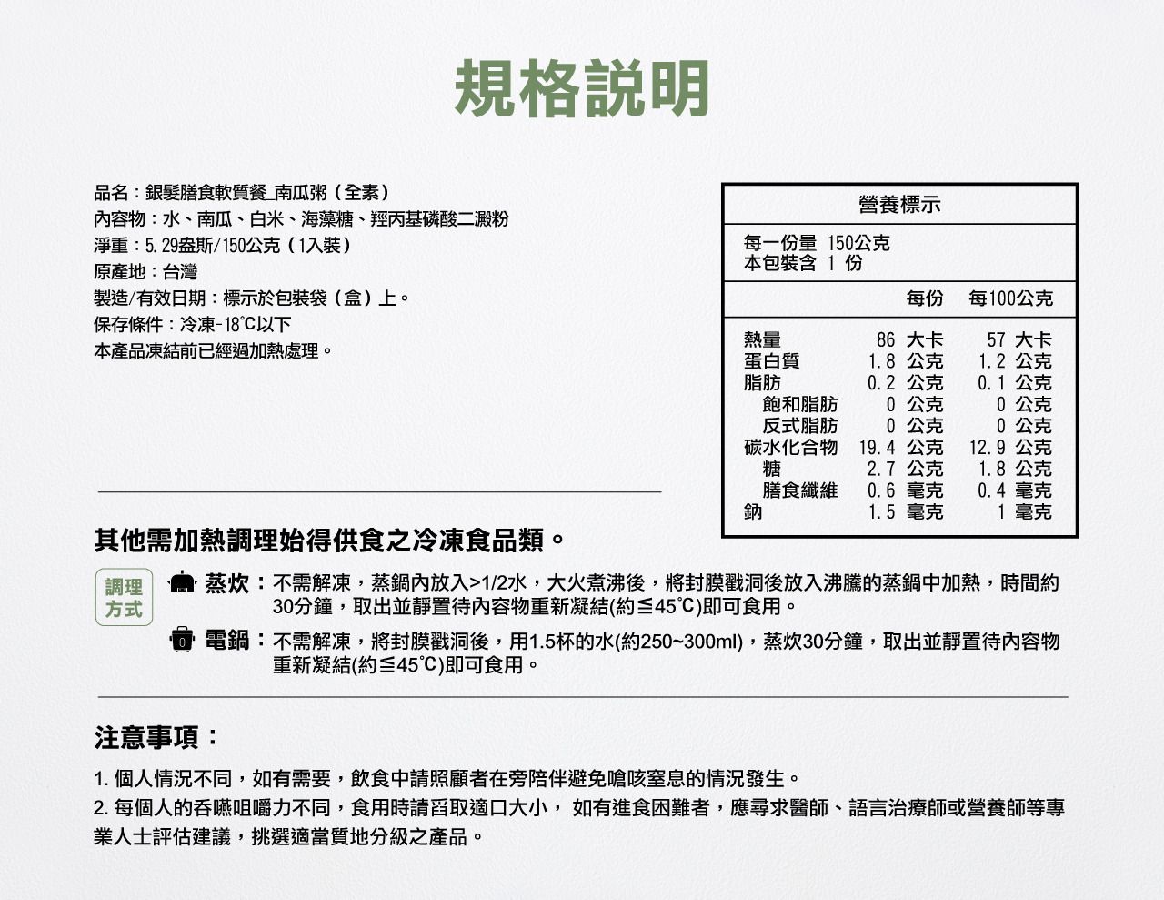 • 銀髮友善食品 (食用前請先諮詢醫生/營養師建議)