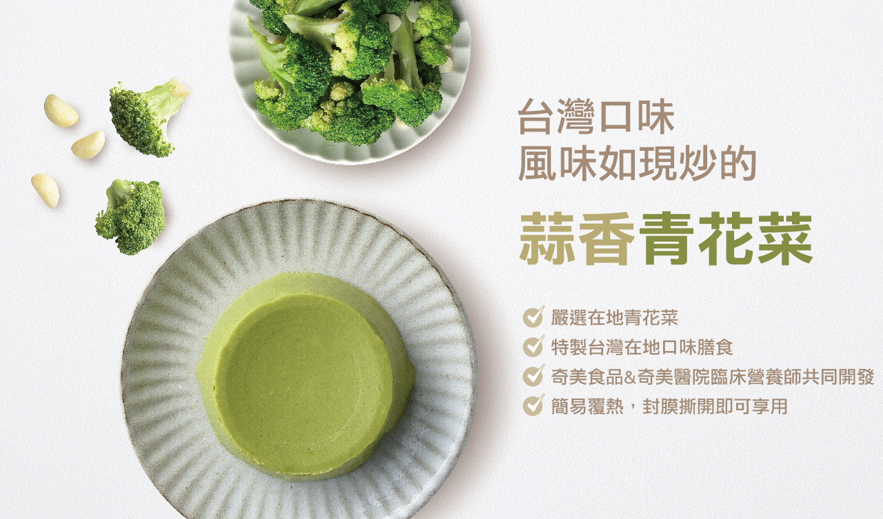 由奇美食品廠生產製造,我們有多位專業營養師、廚師、品管人員等,提供消費者安全、營養、美味、專業的安心食品。每一批產品生產後,皆會經過①營養素分析②感官品評③質地檢測④微生物檢測,通過後方可出貨。