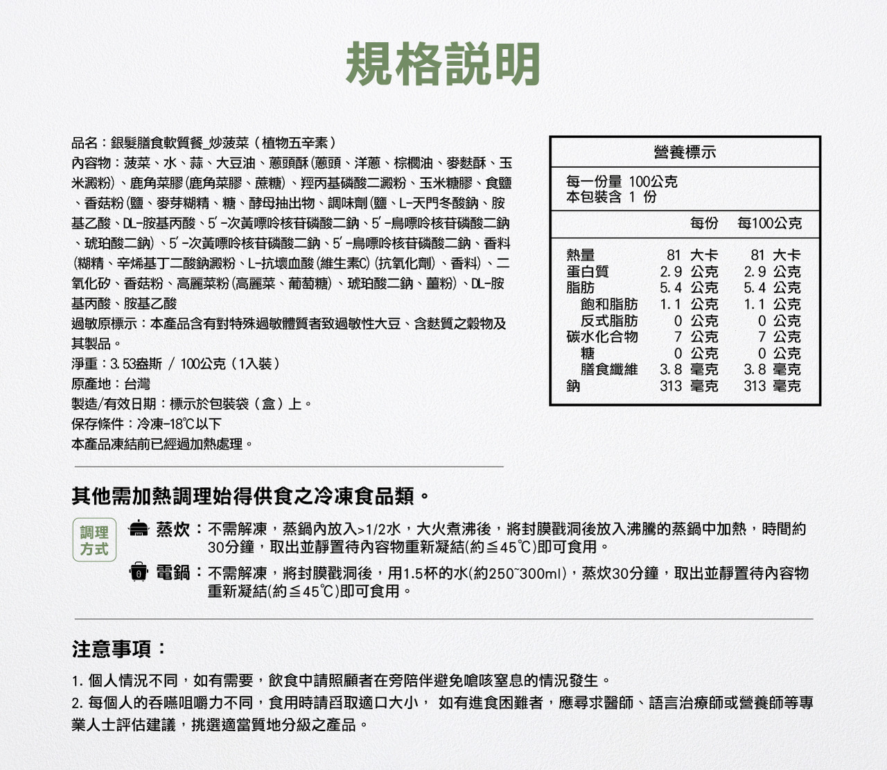 • 銀髮友善食品 (食用前請先諮詢醫生/營養師建議)