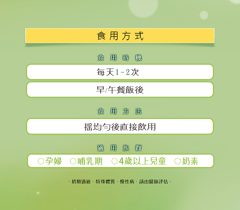 | 食用方式 | 每日1-2包、撕開鋁箔,直接飲用 |