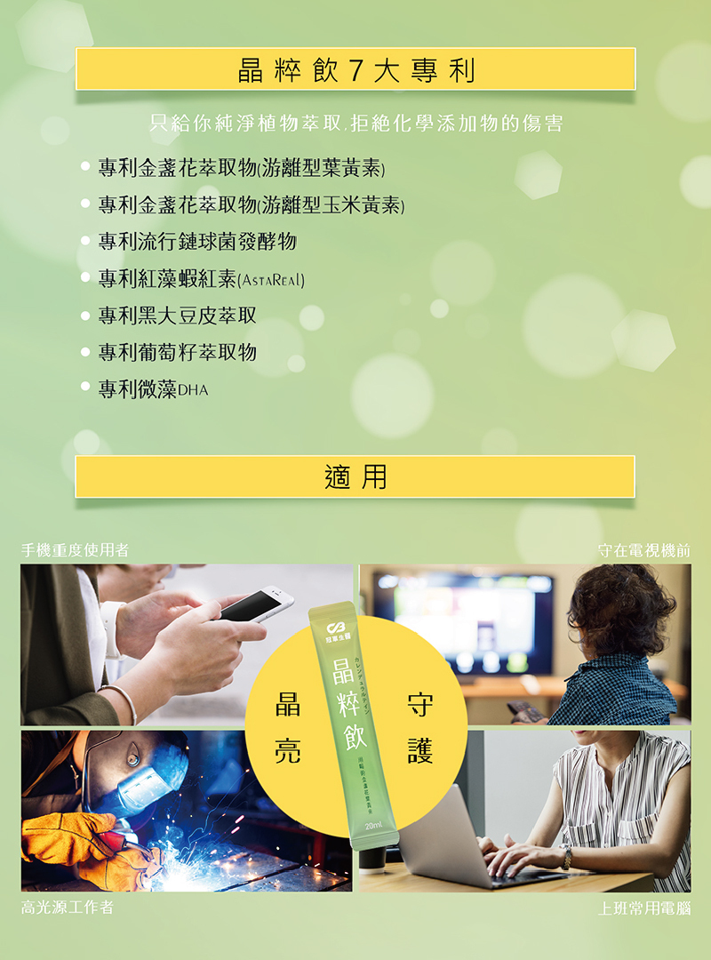 。適用族群:低頭族、上班族、電視兒童、銀髮族、學生族