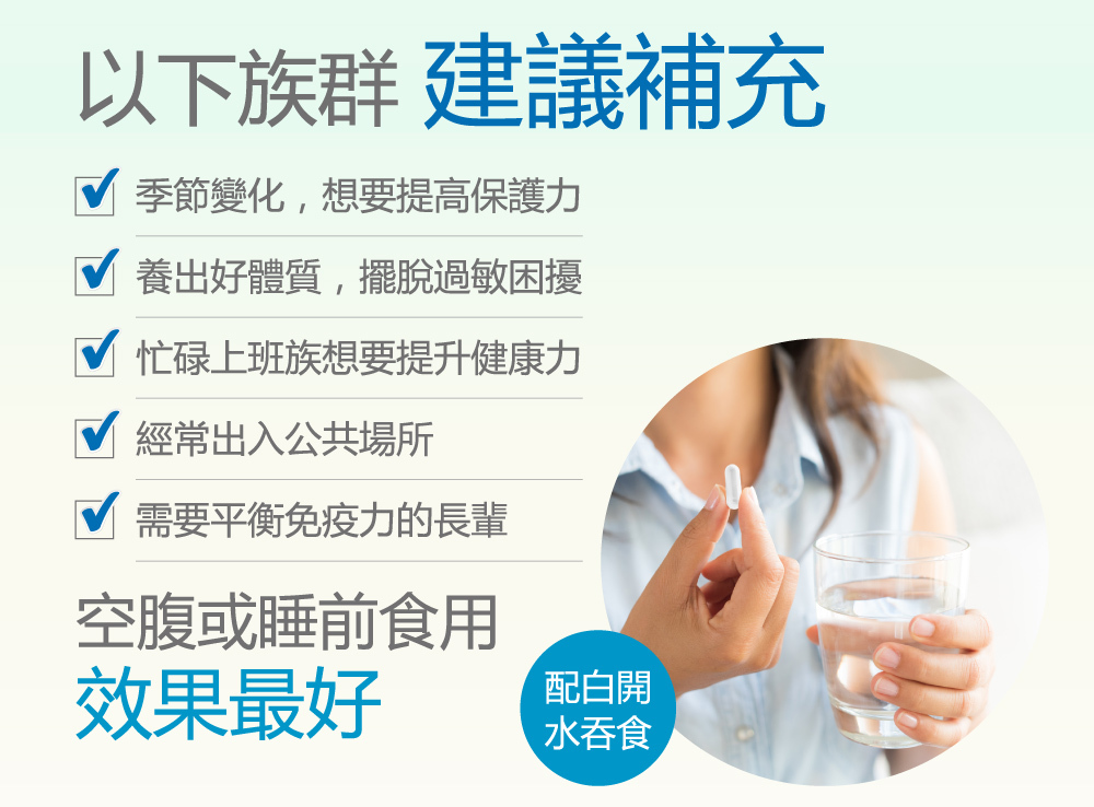 | 注意事項 | 本產品含有牛奶、大豆及其製品 (菌粉製造過程中有使用大豆及牛奶)。不適合對其過敏體質者食用。本產品非藥品,供保健用,罹病者仍需就醫。請依建議攝取量食用,勿過量。有免疫相關疾病者請先諮詢醫師後,再謹慎食用 |