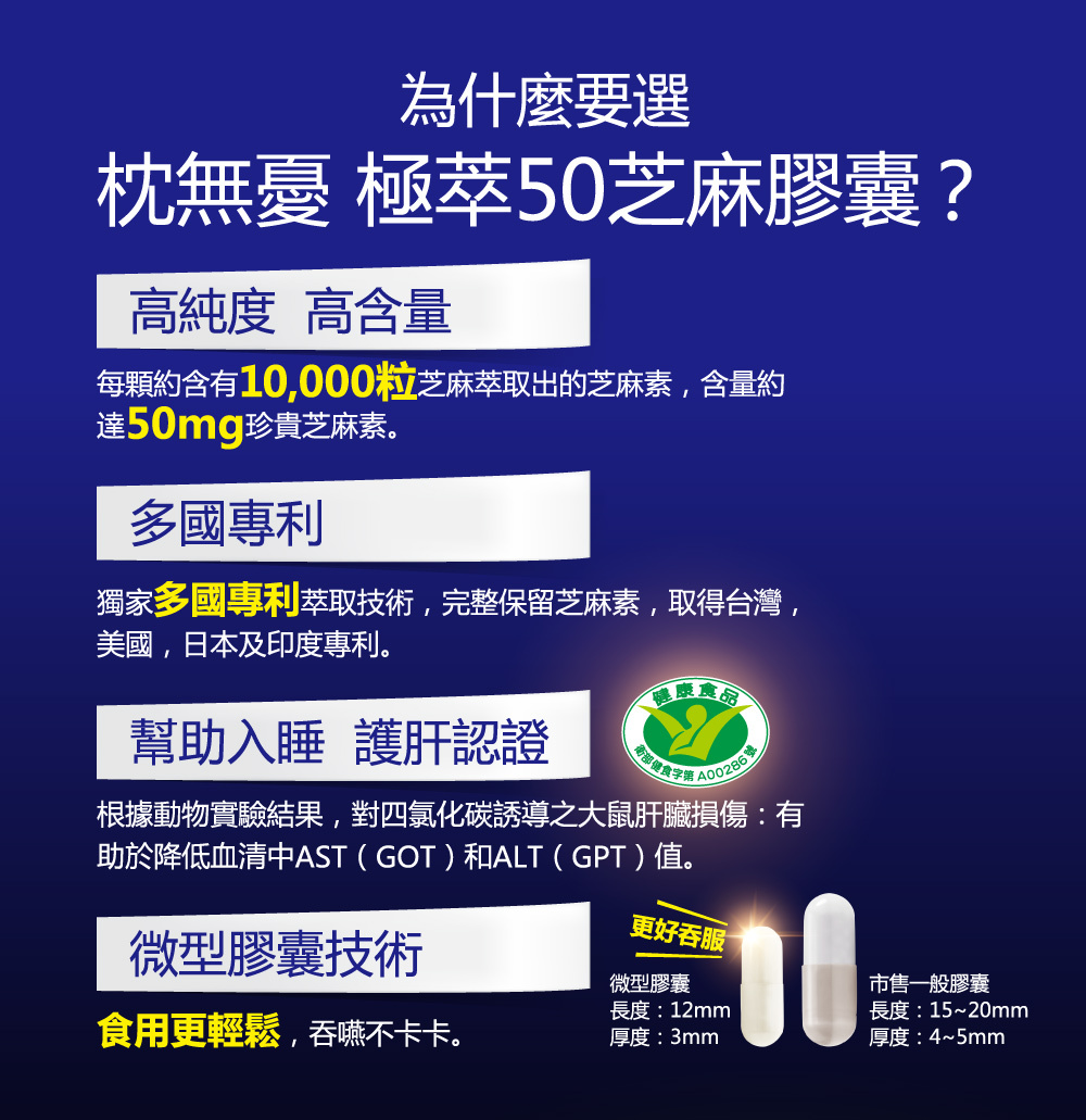| 商品名稱 | 【健康力】枕無憂極萃50芝麻膠囊(30顆/盒) |