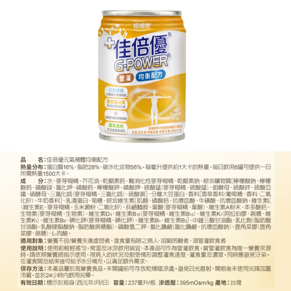 | 商品名稱 | 【佳倍優】元氣補體均衡配方 買三箱送一箱(24罐/箱) (237毫升/罐) |