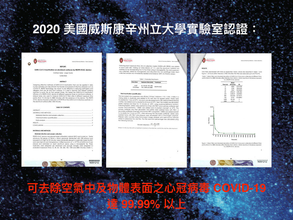 ★同時獲美國威斯康辛大學測試證實,有效撲滅病毒達 99.99% 以上,包含細菌、黴菌、及病毒