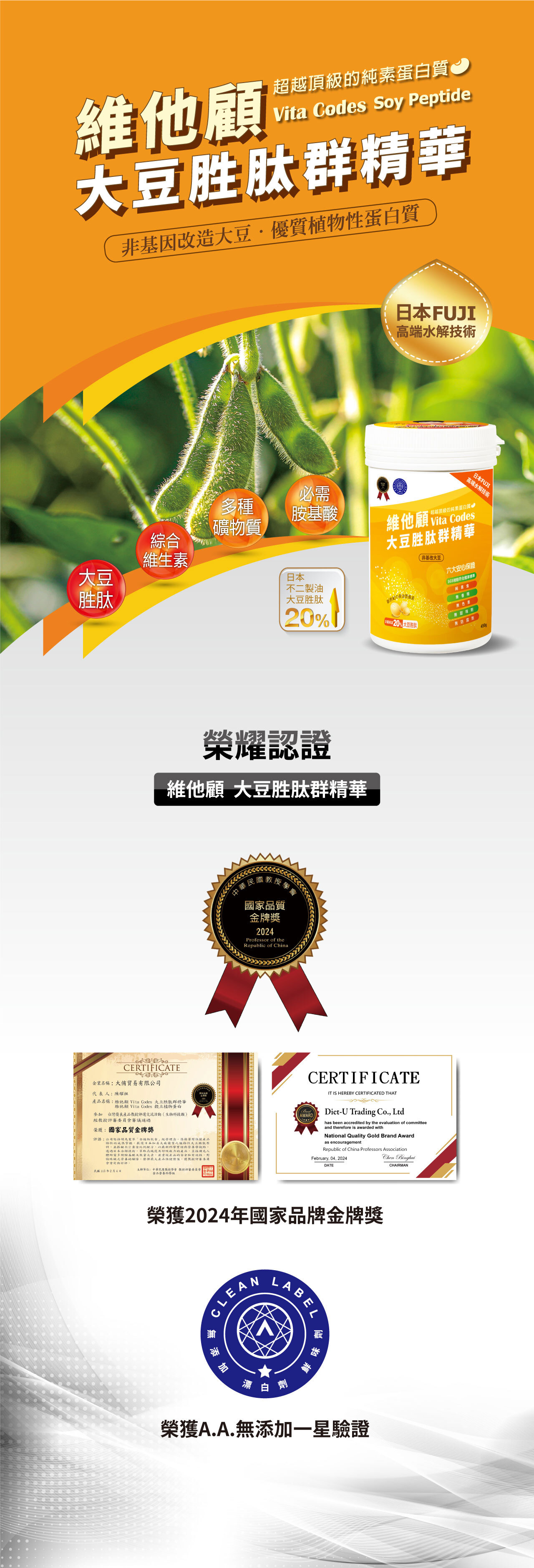 | 商品名稱 | 【維他顧Vita Codes】大豆胜肽群精華(450g/罐)X5罐組 |