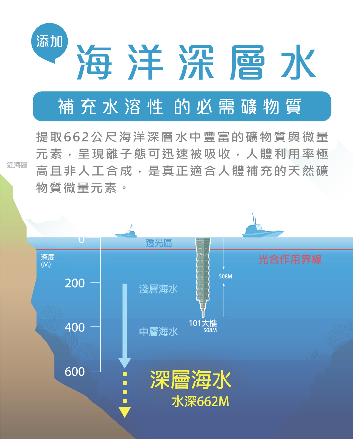 ★ 搭配花蓮外海662公尺深的珍貴「海洋深層水」,讓您同時補充天然礦物質