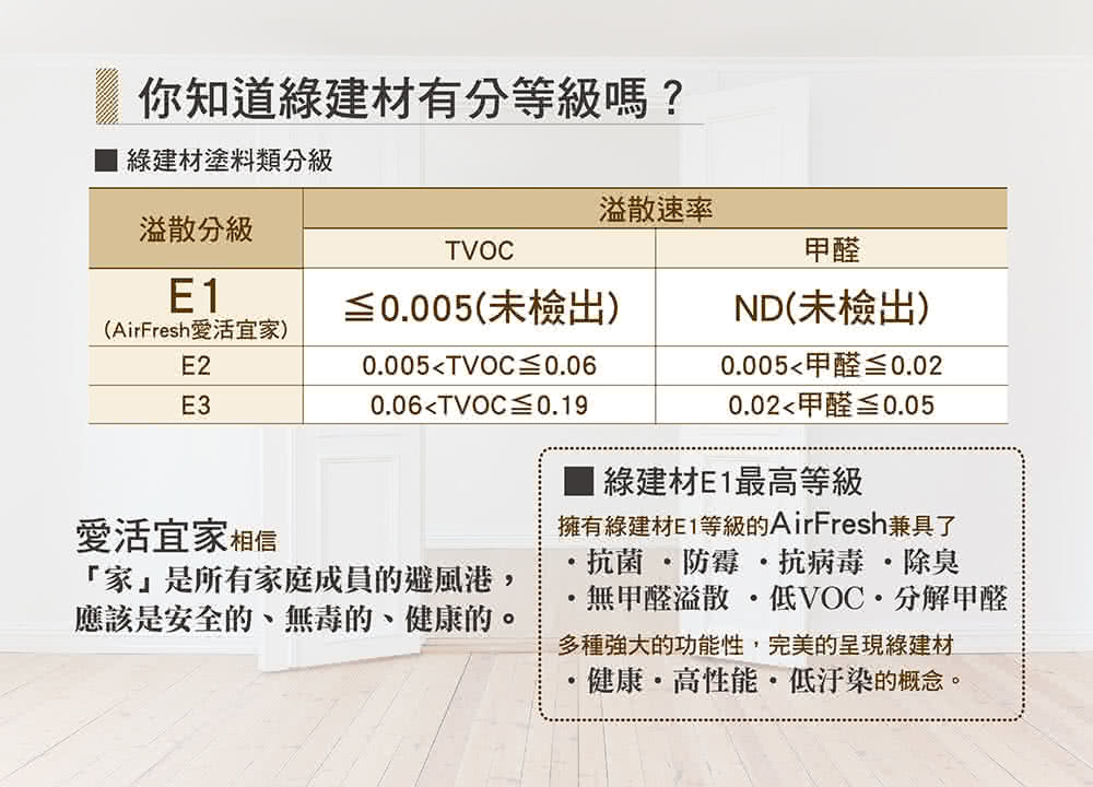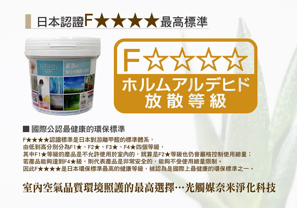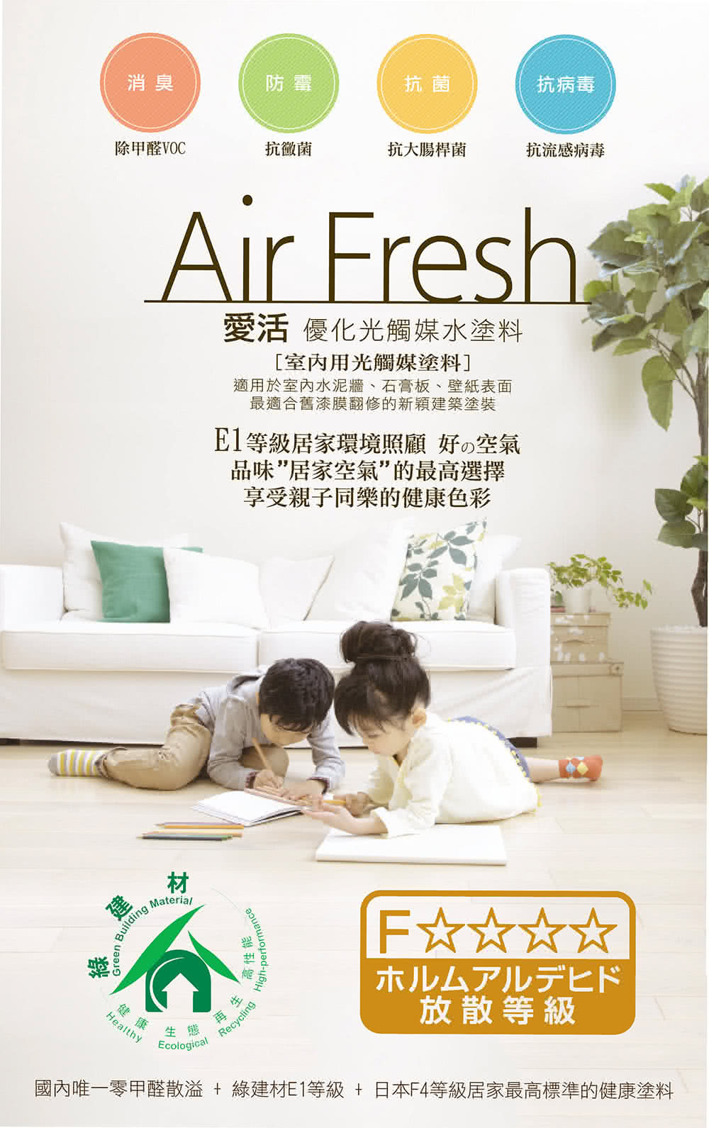 ★AirFresh愛活E1宜家 優化光觸媒水塗料,日本室內F5★,最高等級綠建材