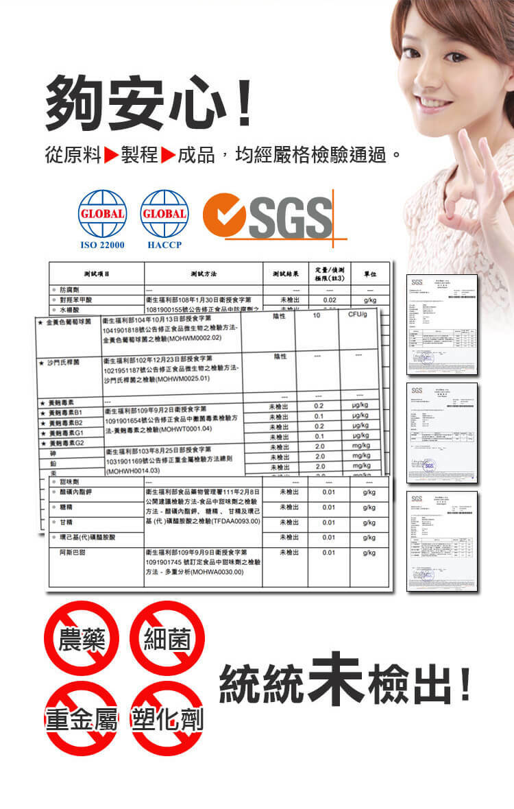 ✓無人工添加物等SGS及HACCP嚴格檢驗通過