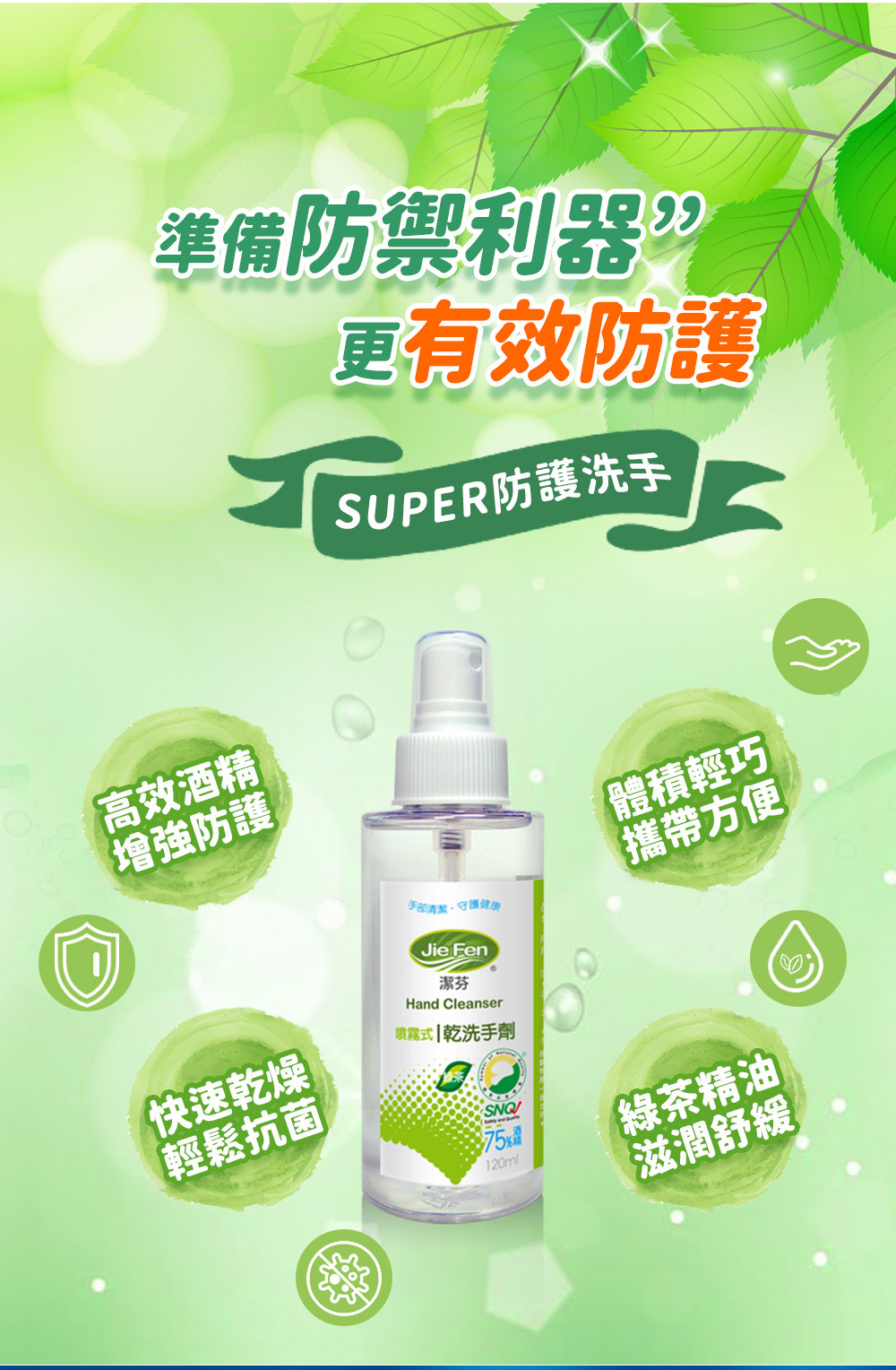 | 使用方式 | 一般人均適用(幼兒使用請大人從旁看護指導使用),均勻噴灑於雙手,輕輕搓揉至完全揮發即可 |