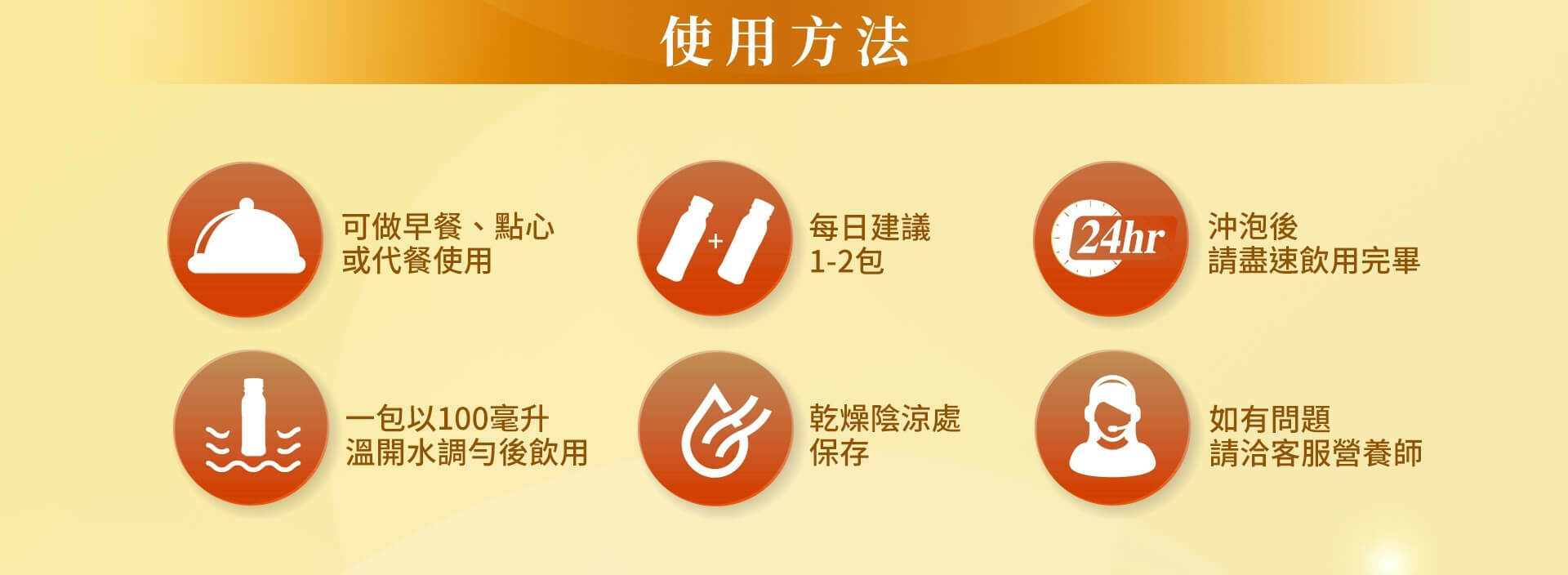 | 食用方式 | 每日1-2包,1包以100毫升溫開水調勻後飲用 |