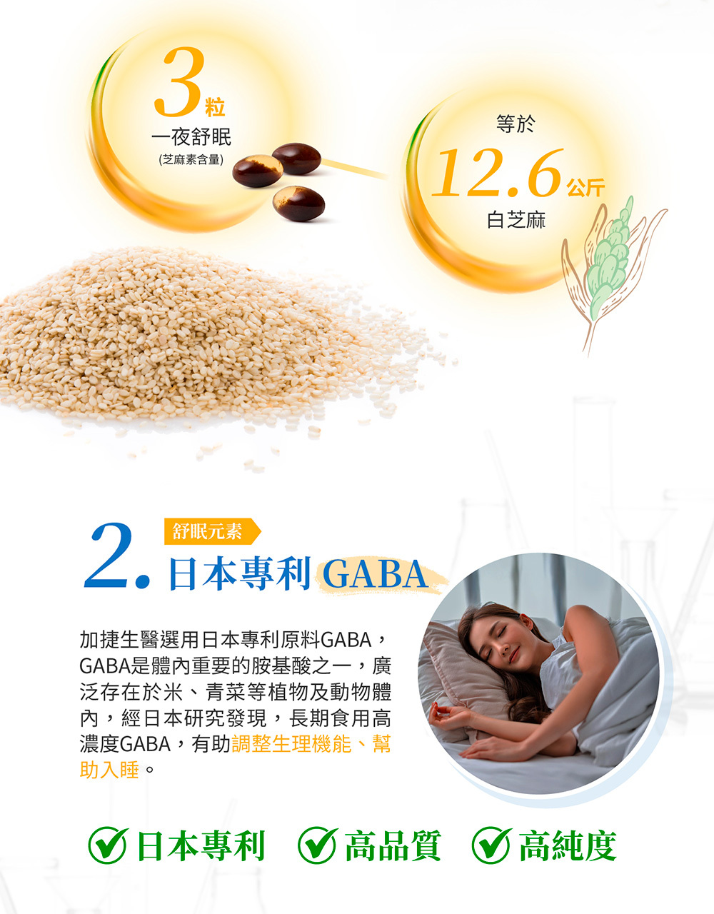 | 商品名稱 | 【加捷生醫】一夜舒眠 芝麻萃取xGABA膠囊(30粒/瓶)*3瓶組 |