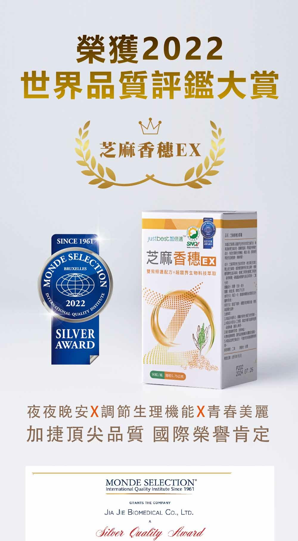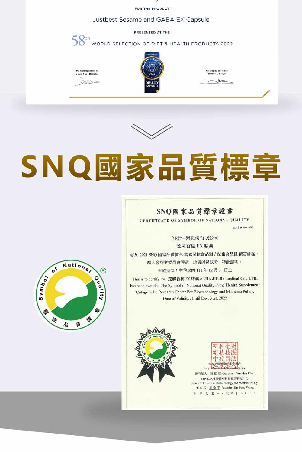 ★ 榮獲-世界品質評鑑大賞銀獎、SNQ國家品質標章