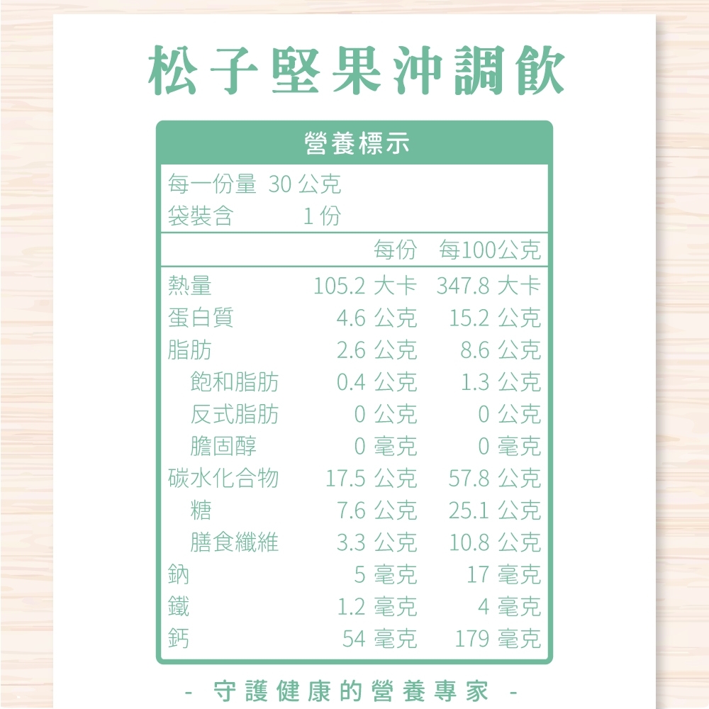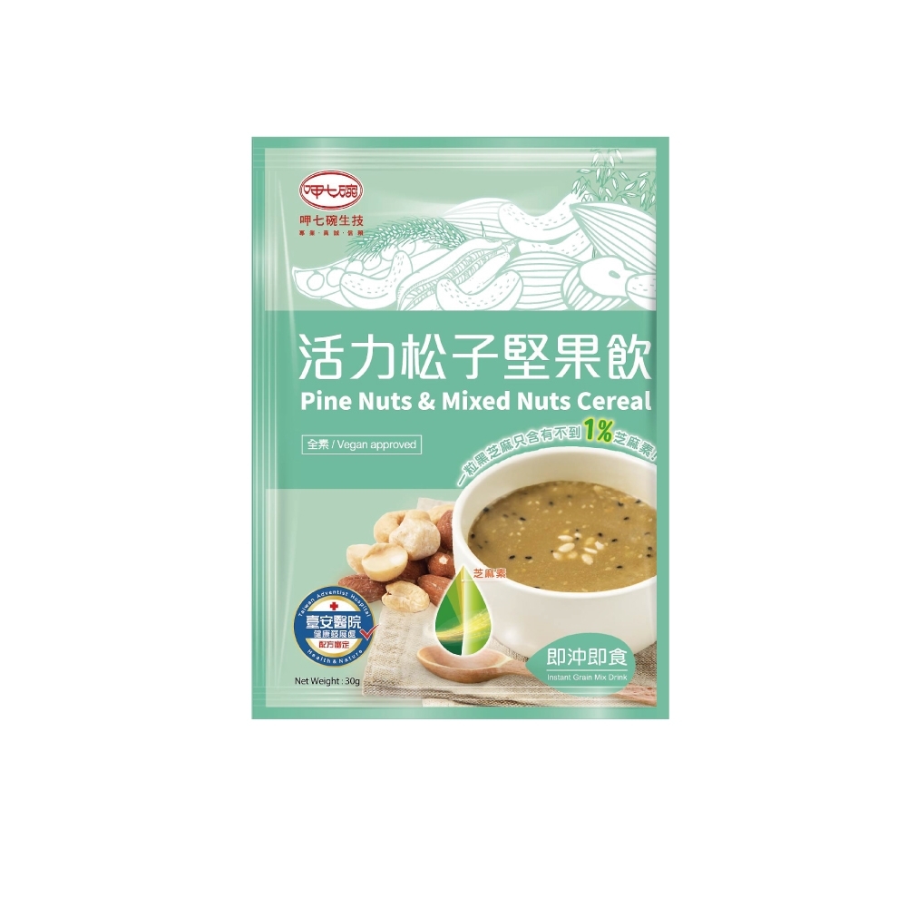 【活力松子堅果飲】特別添加超級抗氧化物 - 濃度高達90%的芝麻素與珍貴松子,除了天然穀物與養生堅果,更加上富含礦物質的黑糖來提味,每日輕鬆補充,讓身體活力滿滿。