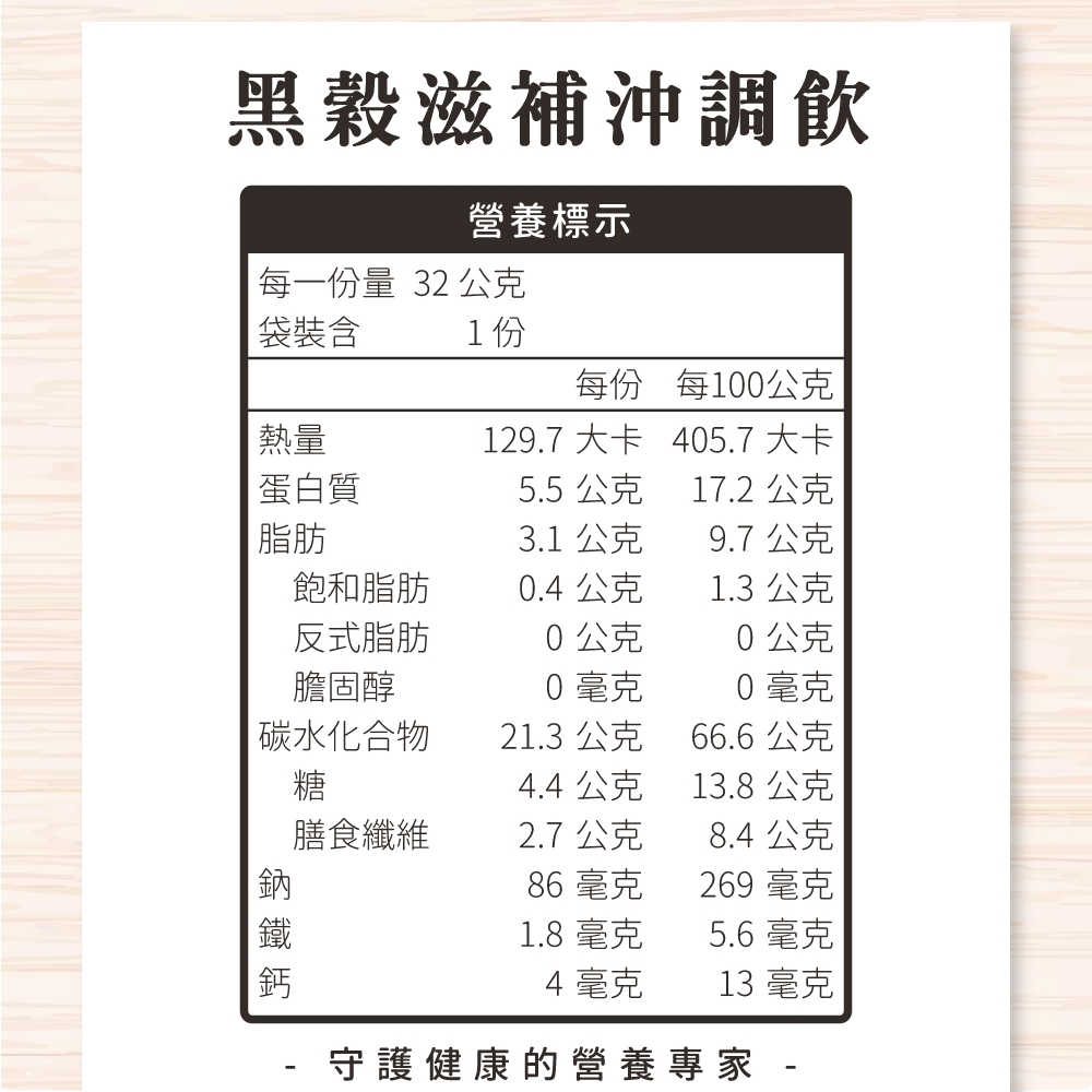 | 商品成分 | 【黑榖滋補沖調】 黑糖、黑芝麻、糙米、黑豆、大麥、黑米、薏仁、燕麥、當歸、發芽玄米、黑棗、黑木耳