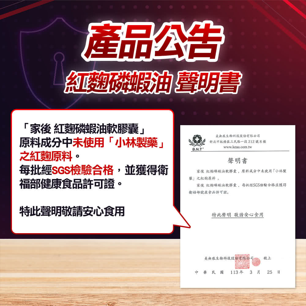 | 商品成分 | 磷蝦油,紅麴萃取物,脂肪酸甘油脂,葡萄籽萃取物,維生素E |