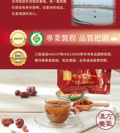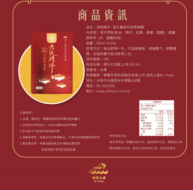 | 商品成分 | 漢方萃取液(水、枸杞、紅棗、黃耆、當歸)、龍膽膠原萃 |