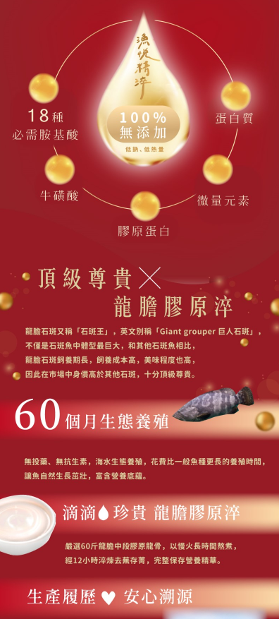 | 商品成分 | 漢方萃取液(水、枸杞、紅棗、黃耆、當歸)、龍膽膠原萃 |