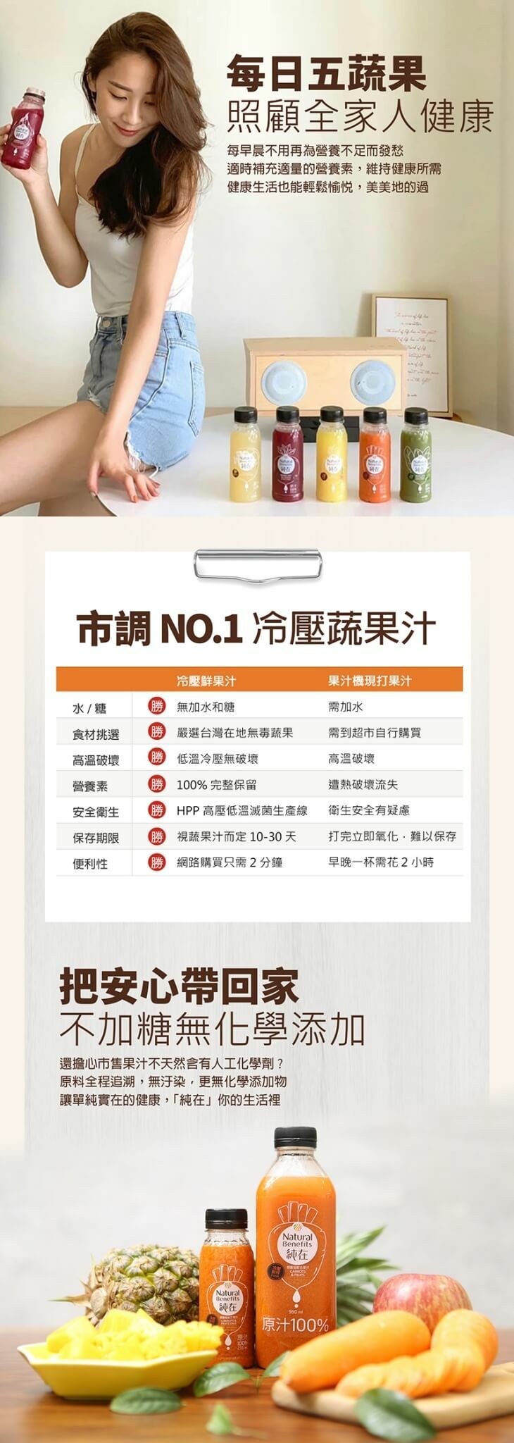 | 保存方式 | 本產品請冷藏保存,開瓶後請盡快飲用完畢。 本產品由鮮果榨取,沉澱為蔬果纖維,飲用前請先搖勻,風味更佳