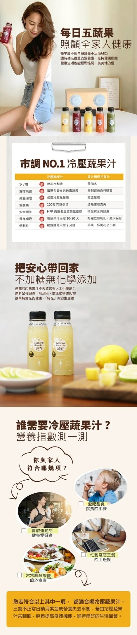| 保存方式 | 本產品請冷藏保存,開瓶後請盡快飲用完畢。 本產品由鮮果榨取,沉澱為蔬果纖維,飲用前請先搖勻,風味更佳