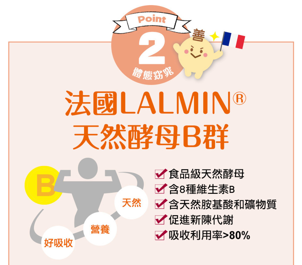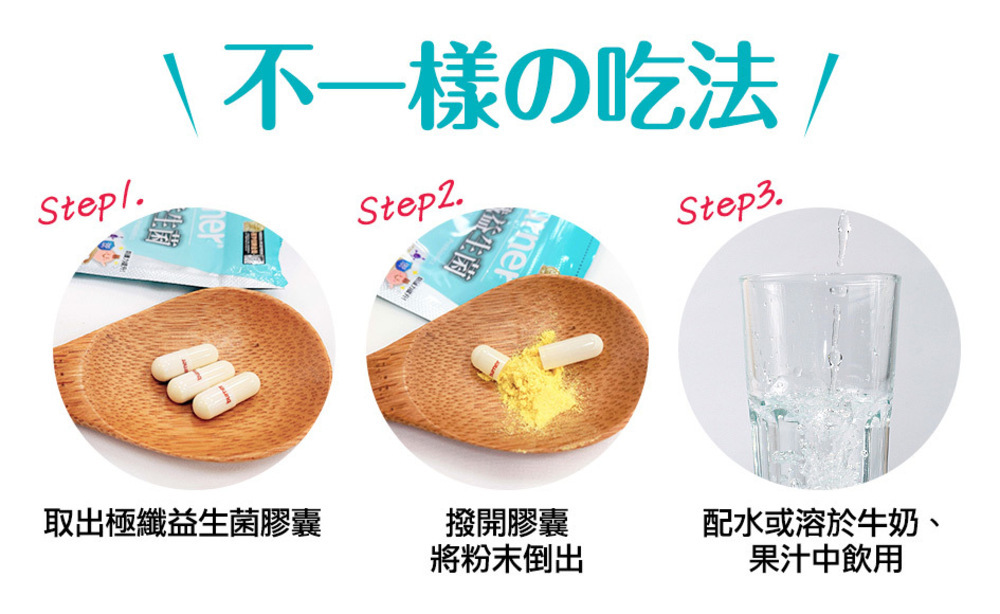 商品成分 啤酒酵母(含維生素B1、維生素B2、維生素B6、維生素B12、菸鹼素、葉酸、泛酸、生物素)、木寡糖、專利乳酸菌(麥芽糊精、雙歧桿菌(Bifidobacterium lactis CECT8145)、糖) 膠囊: 明膠、二氧化鈦、硫酸月桂酯鈉、純水