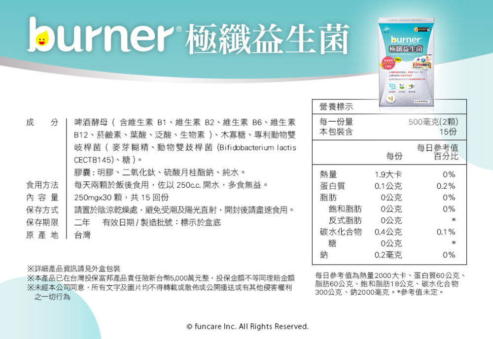 商品名稱 【船井】bnrner倍熱 極纖益生菌(30顆/盒)