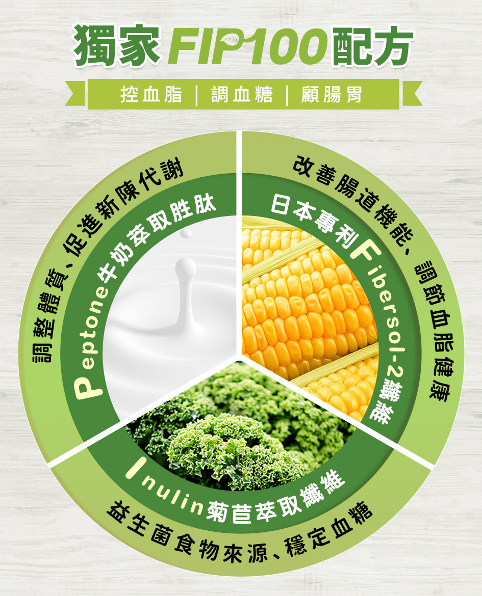 | 商品成分 | 難消化性麥芽糊精(Fibersol-2膳食纖維)、菊糖(Inulin膳食纖維)、牛乳蛋白(Peptone) |