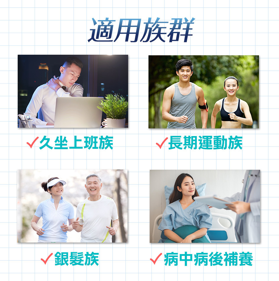 ★適用久坐上班族、長期運動族、銀髮族、病中病後補養