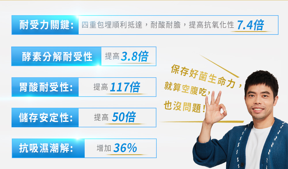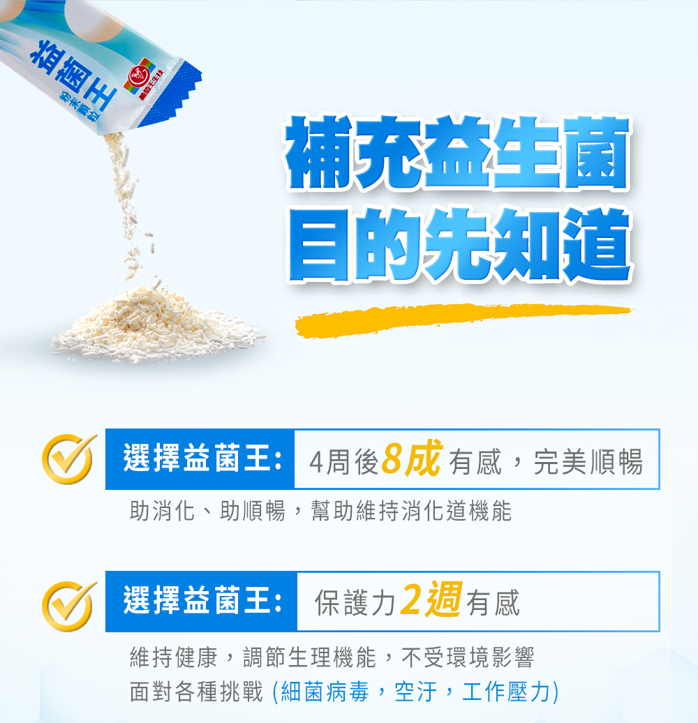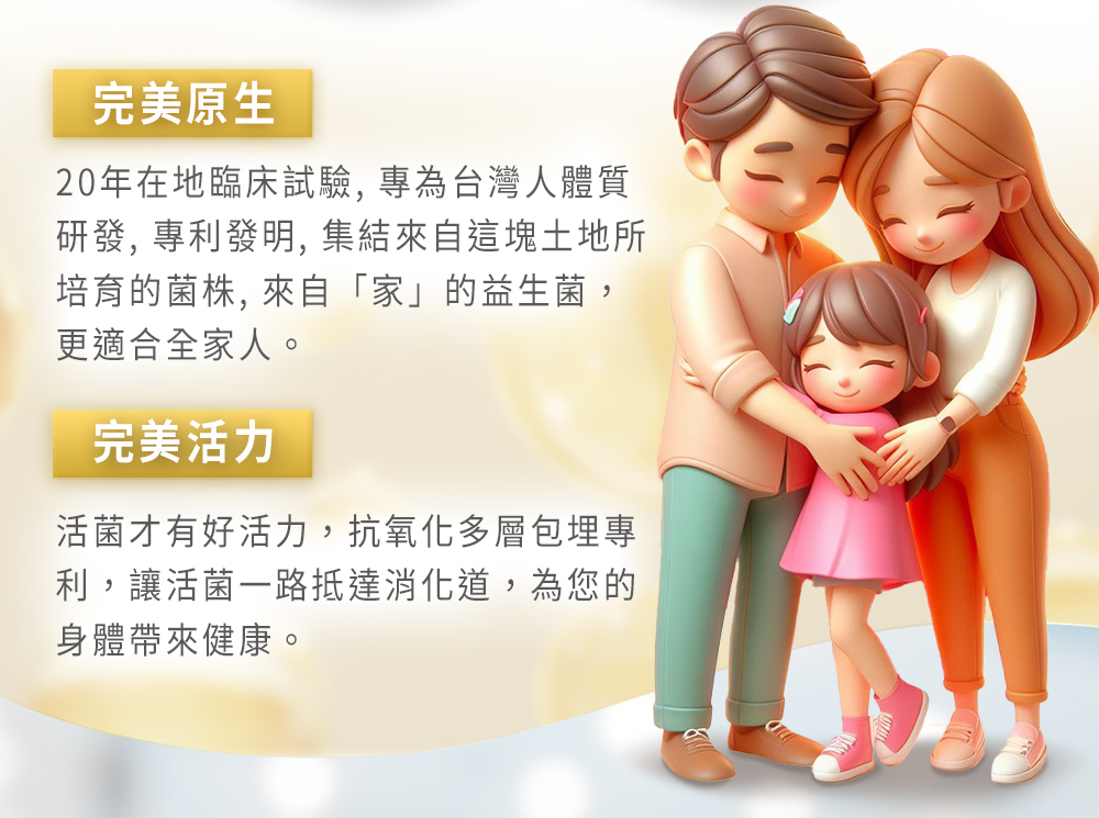 | 注意事項 | 1.本品含牛奶製品,過敏體質、服用藥物或懷孕及授乳期間,請在食用本產品前,先洽詢醫師意見。 2.本品含有較細緻粉末,食用前稍加搖晃均勻較佳,不擅吞嚥者食用請留意 3.避免與抗生素同時食用而降低效果,建議間隔兩小時為佳 |