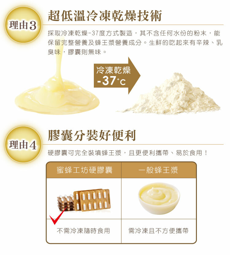 | 商品成分 | 凍晶蜂王漿粉、植物性膠囊 |