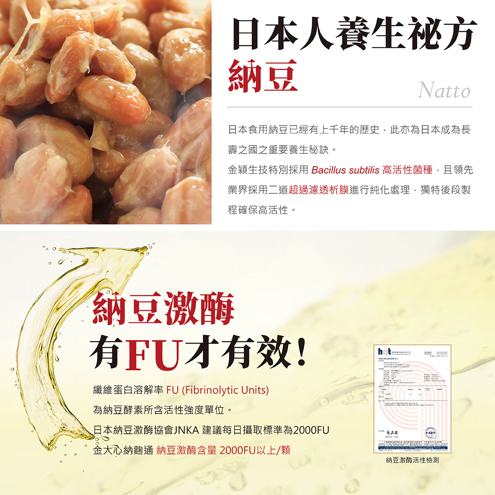 ◆ 採用國際大廠納豆激酶,2,000FU以上/顆