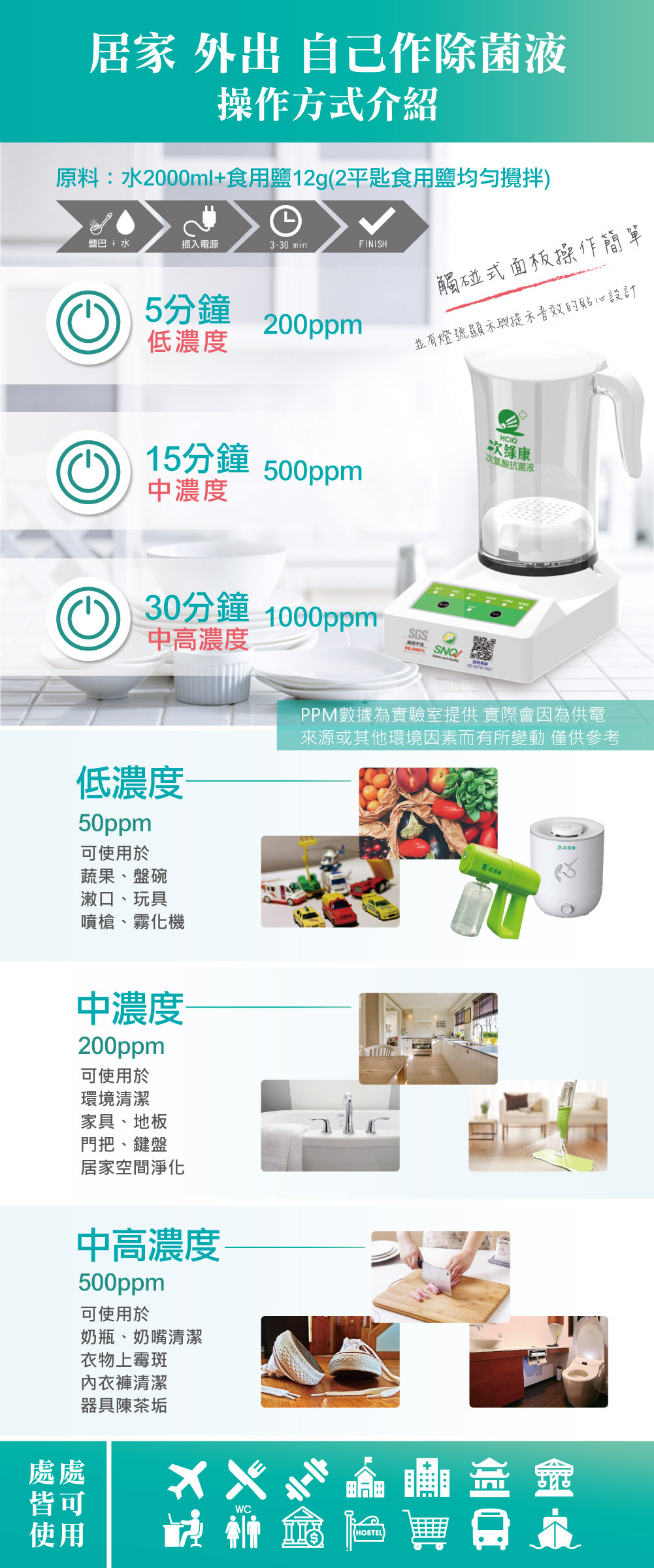 ★用水+食鹽,3-6-10分鐘做出消毒液