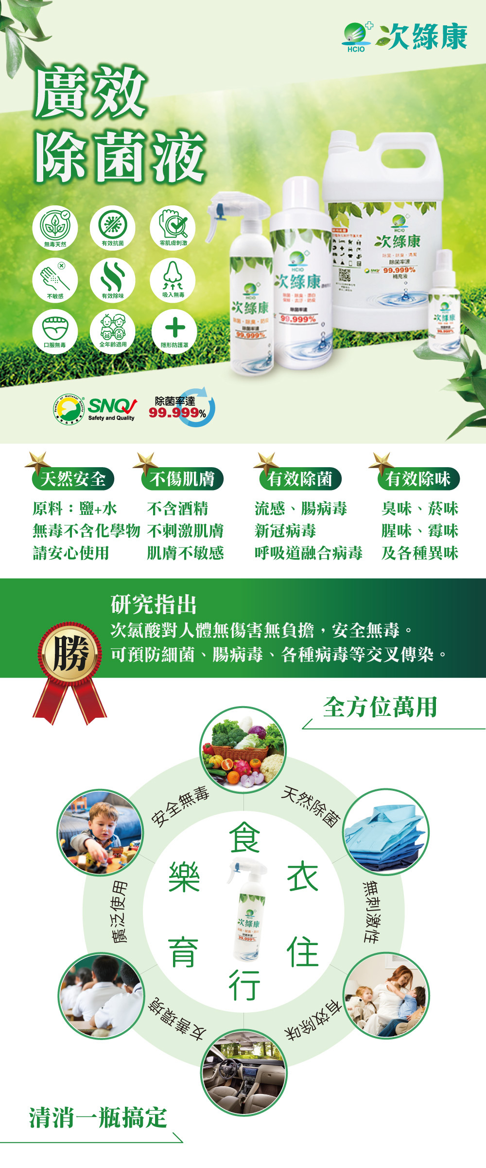 | 商品名稱 | 【次綠康】次氯酸濃縮原液1L*1+次綠康健康除菌液350ml*1+60ml*1 |