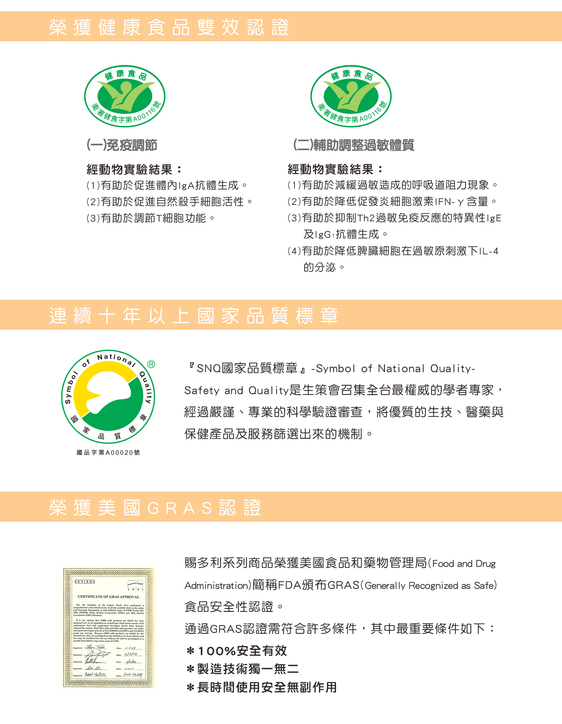 ★榮獲衛福部核准兩項康食品認證- 免疫調節、輔助調整過敏體質